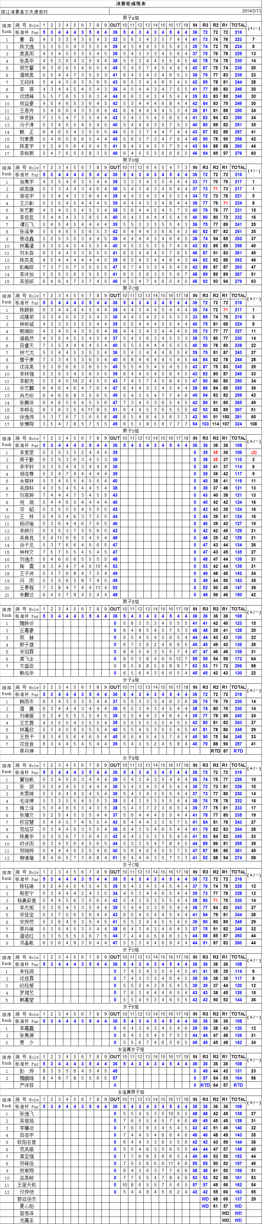北京时间2月13日,由国家体育总局小球运动管理中心、中国高尔夫球协会主办,广东省高尔夫球协会协办,深圳市美利华体育发展有限公司承办的2015全国青少年高尔夫精英挑战赛首站在阳江涛景高尔夫度假村圆满收杆。利百特高尔夫学院学生韩雨岑成功反超,以三轮分别79,76,75越战越勇的好成绩拿下女子A组冠军。