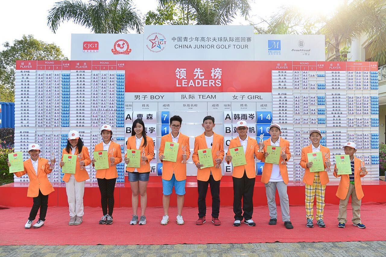 中高协青少年项目负责人刘荣耀先生、广东省高协竞赛部副部长邓汉敏、美利华体育总经理高薇、阳江涛景球会总经理黄和峰、比奇汉董事长胡湘等出席了颁奖典礼。夺冠的选手们除了披上黄夹克,将有数名选手可获得AJGA参赛资格,直通美国AJGA参与其OPEN级别赛事。