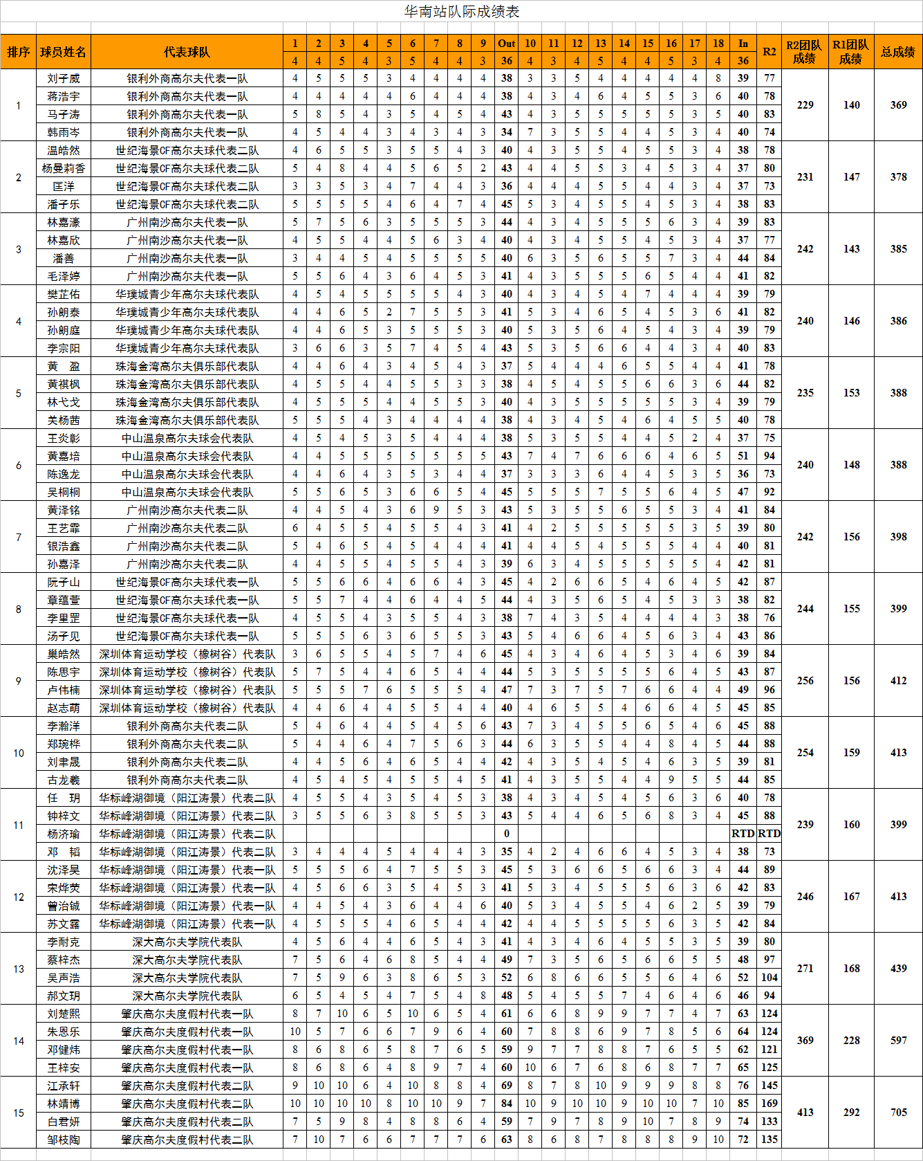 团队赛方面,队伍成绩将录取四名队员中最好的三个,结合昨日的比赛成绩进行统计排名。最终,银利外商一队扩大领先并以9杆的优势夺得2015CJGT队际赛华南站的桂冠;世纪海景二队本轮的攻势凶猛,反超前面4支队伍,最终以378杆稳住了第二名;而广州南沙一队凭借1杆的优势领先华璞城一队,排在第三位。
