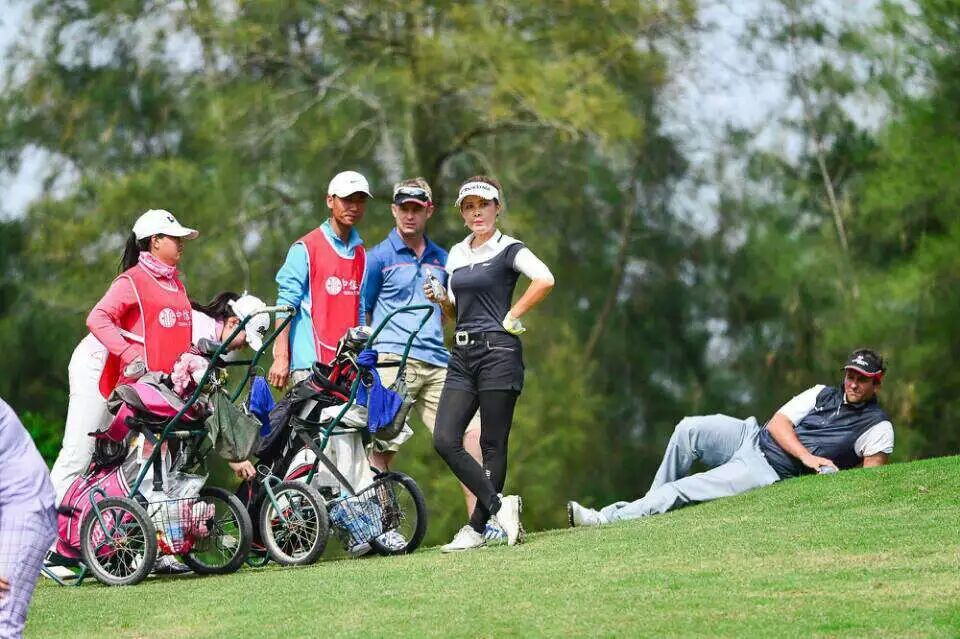 利百特高尔夫学院中国区总监大卫.诺奎由于观战太辛苦,趁着开球间隙,在草地上躺着休息片刻。特此,被称为此次比赛的“睡美人”(—__—!)
