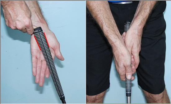 Holding the putter is a little different from the grip that you would normally use when playing a driver or iron shot. Position the handle of the club up in the palm of the left hand (for a right handedgolfer). This will take the smaller muscles out of play and encourage the bigger muscles to swing the club so under pressure this will give you morecontrol on direction and distance.