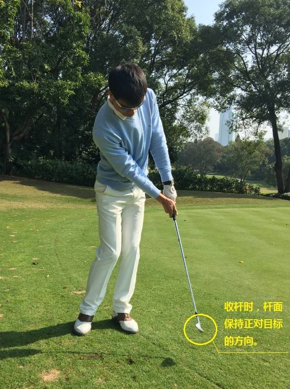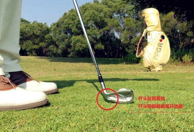 2、让杆头跟部略微离开地面让趾部着地。